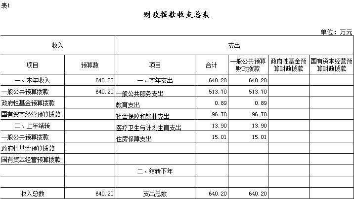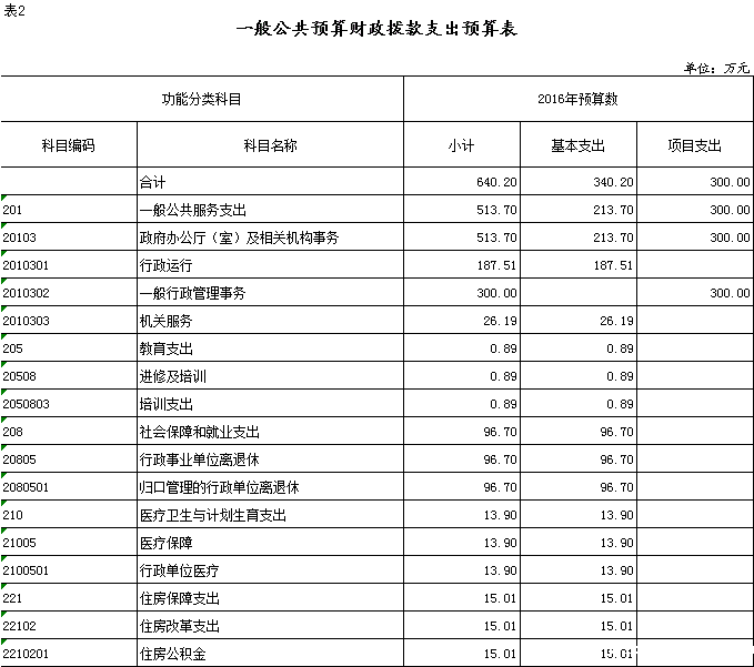 2016年公共财政拨款支出预算640.20万元, 其中基本支出340.20万元, 项目支出300万元。