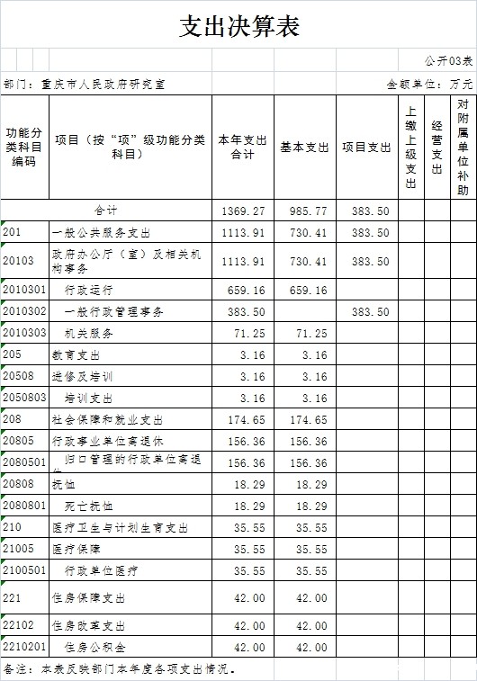 重庆市人民政府研究室2016年部门决算情况说明