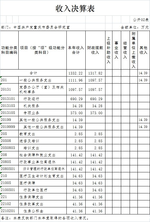 本部门2016年度收入合计1,332.22万元,其中:财政拨款收入1,317.82万元,占98.92%;其他收入14.39万元,占1.08%。