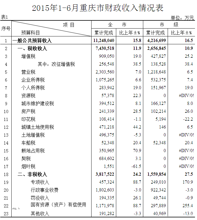 ——税收收入稳中有升。全市税收收入增长11.9%,较5月提高2.9个百分点,增幅稳中有升。分税种看,增值税、营业税、企业所得税三大主体税种分别增长19.0%、7.0%、6.6%,占税收的比重达到57.7%,占比保持稳定;个人所得税增长19.0%,增速较上月提高1.3个百分点;城镇土地使用税、耕地占用税延续较快的增长速度,分别增长44.2%、70.9%。