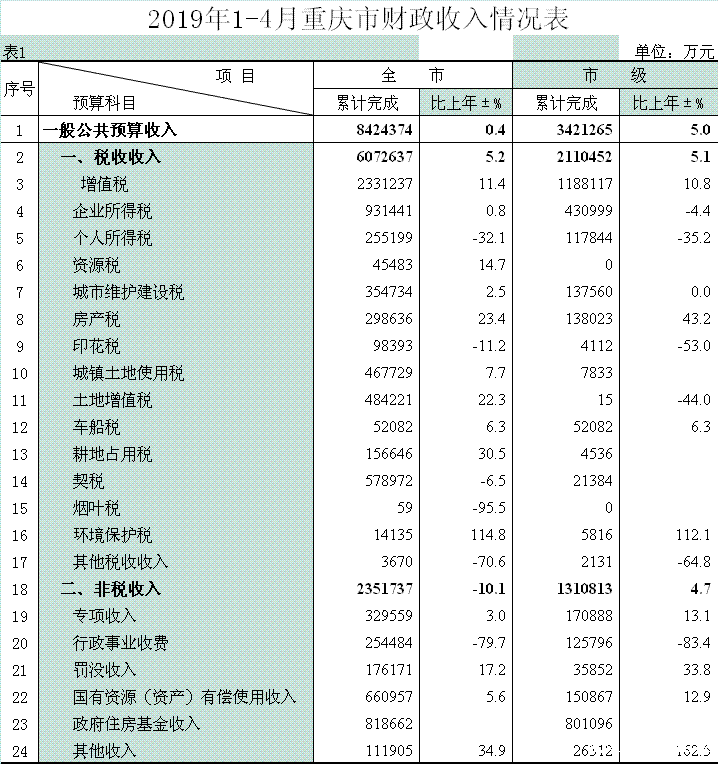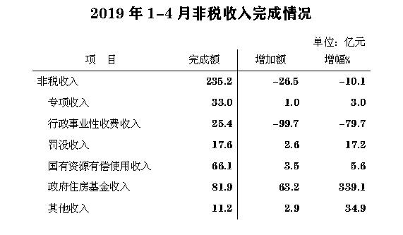 ——非税收入情况。受一系列降费政策及城市建设配套费转列基金预算收入影响,全市非税收入下降10.1%,减收26.5亿元,非税收入占一般公共预算收入的比重较去年同期下降3.3个百分点。