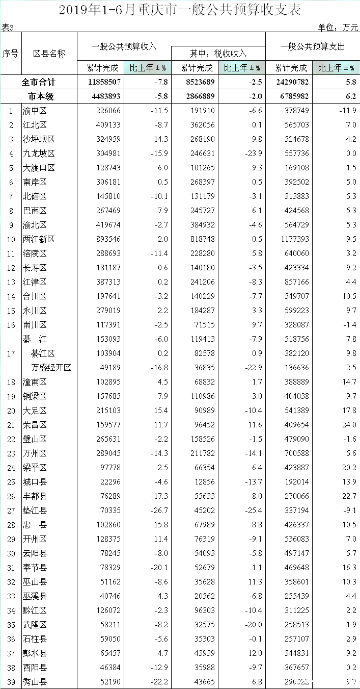 全市一般公共预算收入完成1185.9亿元,下降7.8%,其中:税收收入完成852.4亿元,下降2.5%;全市一般公共预算支出完成2429.1亿元,增长5.8%。